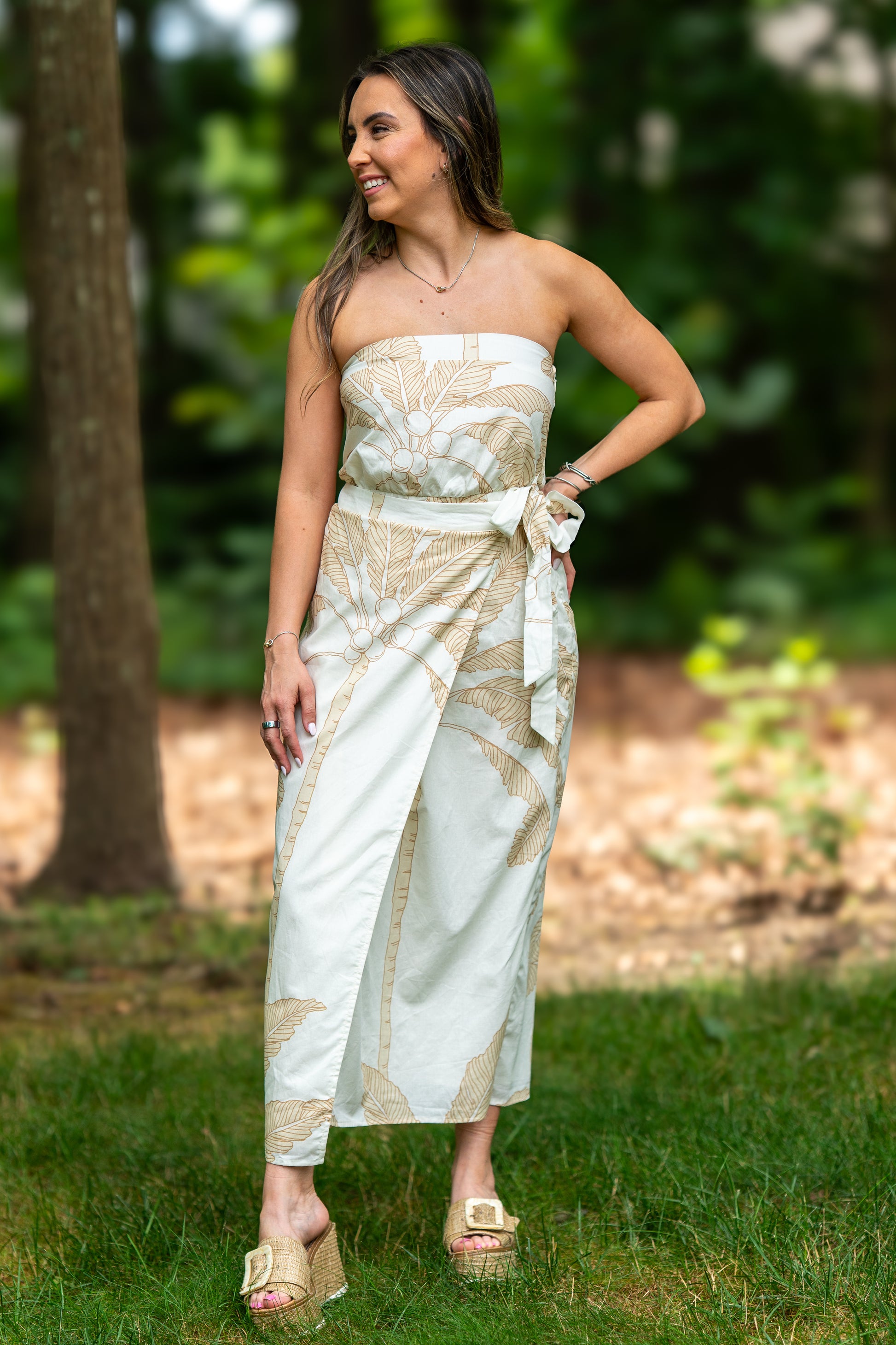 Palm Tree Print Tube Midi Dress